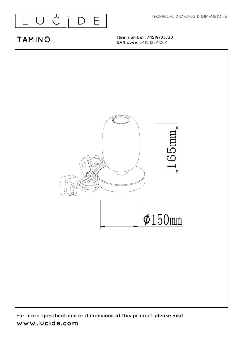 Uhol vyžarovania : 120 °. Dĺžka kábla : 150 cm. Maximálny priemer : 15 cm. Rozmery - dĺžka x šírka x výška : 15 cm x 15 cm x 16.5 cm. Rozmery tienidla - dĺžka x šírka x výška : 12 cm x 12 cm x 13 cm. Váha : 1.3 kg.