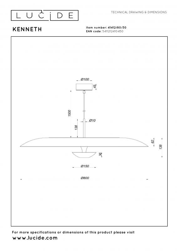 Uhol vyžarovania : 36 °. Dĺžka kábla : 150 cm. Maximálny priemer : 80 cm. Rozmery - dĺžka x šírka x výška : 80 cm x 80 cm x 170 cm. Rozmery tienidla - dĺžka x šírka x výška : 80 cm x 80 cm x 15.2 cm. Maximálna výška : 170 cm. Minimálna výška : 60 cm. Základňa - dĺžka x šírka x výška : 10 cm x 10 cm x 5 cm. Váha : 8.2 kg.