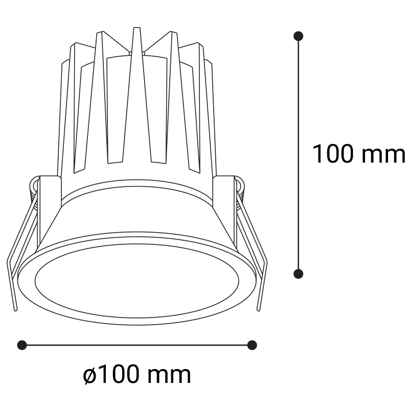 CCT: 3000K/3500K/4000K. Efektivita: 70lm/W. Farba: BLACK. Farba tienidla: TRANSPARENT. Materiál: ALUMINIUM/PC. Napájací zdroj: 350 mA. Napájanie: 220-240V/50-60Hz. Príkon: 15W. Rozmery balenia: 120x120x125 mm. Rozmery svietidla: d100x100 mm. SDCM: < 3. Stmievanie: TRIAC. Svetelný tok zo svietidla: 1050lm. Trieda ochrany: 2. UGR: < 19. Vyžarovací uhol: 40°.