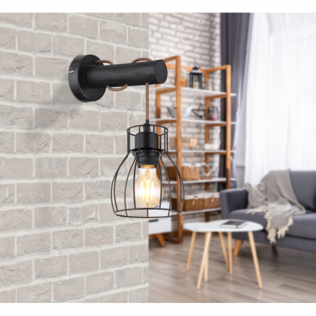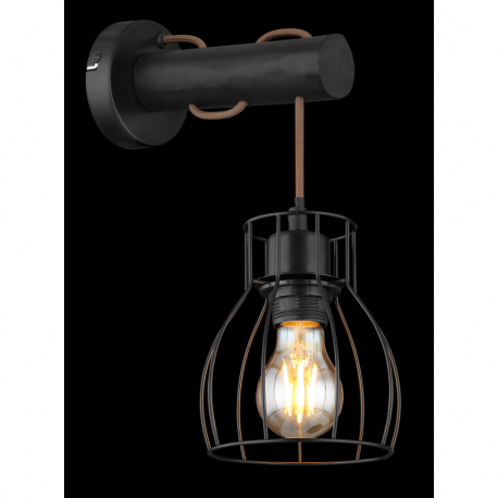 1x40W/E27 Nástenné svietidlo, kov čierny, drevo čierne, imitácia spáleného dreva, textilný kábel šampaň, vypínač, ŠxV:136x330, H:240, bez žiarovky 1xE27, max. 40W 230V