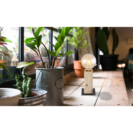 1x60W/E27 Stolové svietidlo, kov čierny, prírodné drevo, vypínač, DxŠxV:90x90x150, bez žiarovky 1xE27, max. 60W 230V