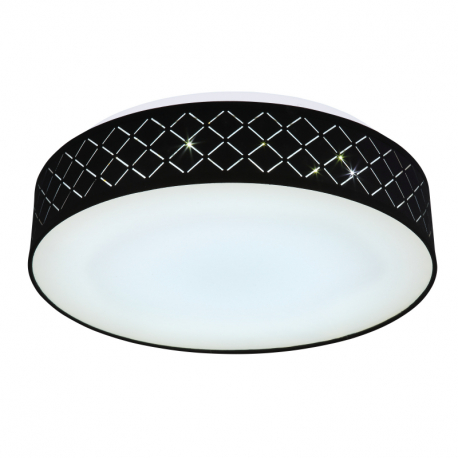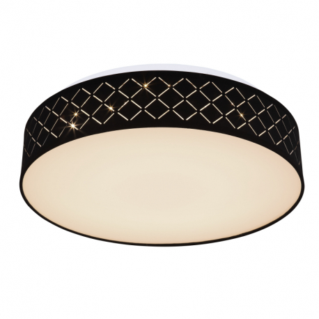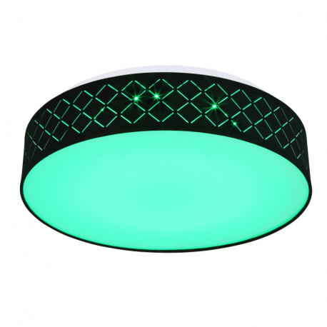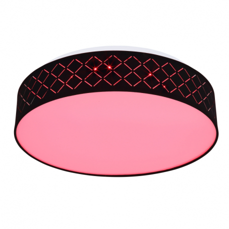 18W, 700lm, 3000K Stropné svietidlo, kov biely,textil čierny,akryl opál,pamäťová funkcia,nočné svetlo,stmievateľné,diaľ.ovládanie,zmena a fixácia farieb,O400,V:110,LED 18W 230V, 1440lm zdroj, 700lm výstup,3000K,RGB LED 5W 230V