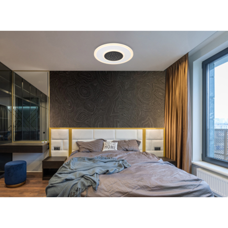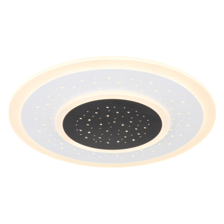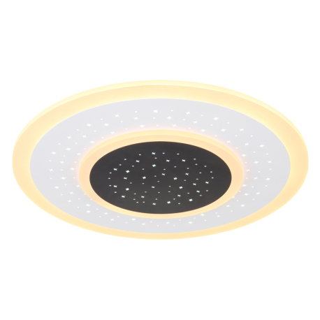 44W, 2083lm, 2700-6000K Stropné svietidlo, kov biely a čierny, akryl opál, stmievateľné, viackrokové ovládanie cez nástenný vypínač, fixácia farby, pamäť, nočné svetlo, diaľ. ovládač, 2x AAA, o: 460mm, V:55mm, LED 44W 230V, 345-4765lm zdroj, 168-2083lm výstup, 2700-6000K