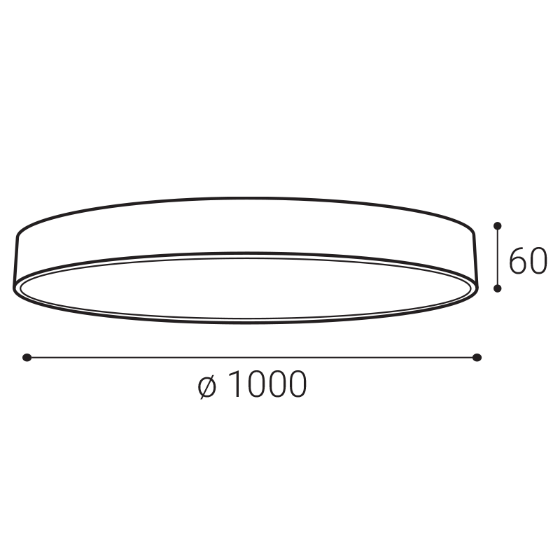 CCT: 2700K/3000K/4000K. Efektivita: 70lm/W. Farba: WHITE. Farba tienidla: OPAL. Materiál: METAL/PMMA. Napájací zdroj: 2x 1400 mA. Napájanie: 220-240V AC. 50-60Hz. Príkon: 115W. Rozmery balenia: 1040x1040x90 mm. Rozmery svietidla: d1000 x 60 mm. SDCM: < 3. Stmievanie: TRIAC. Svetelný tok zo svietidla: 8050lm. Trieda ochrany: 2. Vyžarovací uhol: 160°.