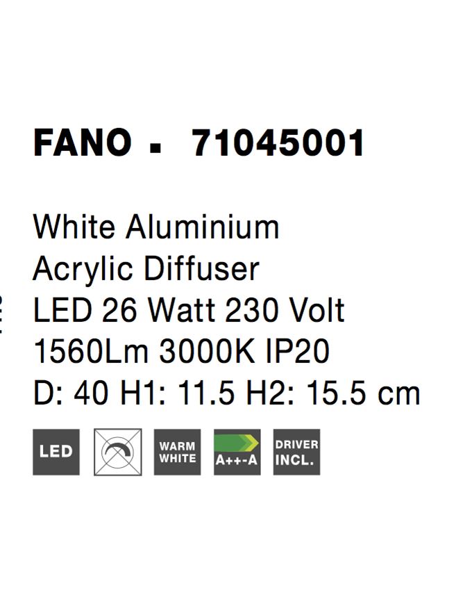 26W/LED, 1560lm, 3000K Stropné svietidlo FANO. Váha: 2,3kg.