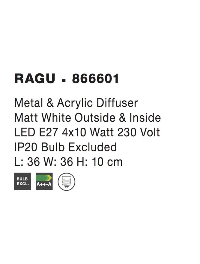4x12W E27 Stropné svietidlo RAGU. Váha: 1,9kg.