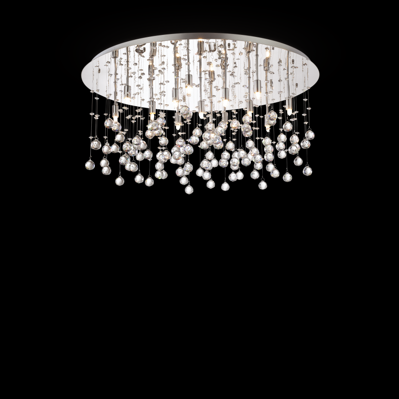 Produkt z kategórie Priestorové pod strop / Svietidlá s ovesmi, štýl moderný, vhodné do obývačka, izba a spálňa, kuchyňa, chodba, kancelária, študovňa s možnosťou použiť svetelné zdroje: Halogénové žiarovky, LED zdroje. 15x40W/G9 Technický list Trieda ochrany: 1. Rozmery artikla: D 800 x H 360 mm. Rozmery rozety: D 760 mm. Počet zdrojov svetla: 15. Váha netto v kg: 11,8. |