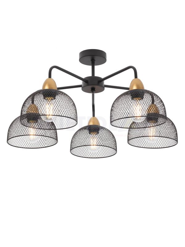 5x42W / E27 Stropné interiérové svietidlo, kovová konštrukcia maľovaná v matnej čiernej farbe so zlatými kovovými detailami zo saténu, difúzor v kovovej farbe s matným čiernym efektom.