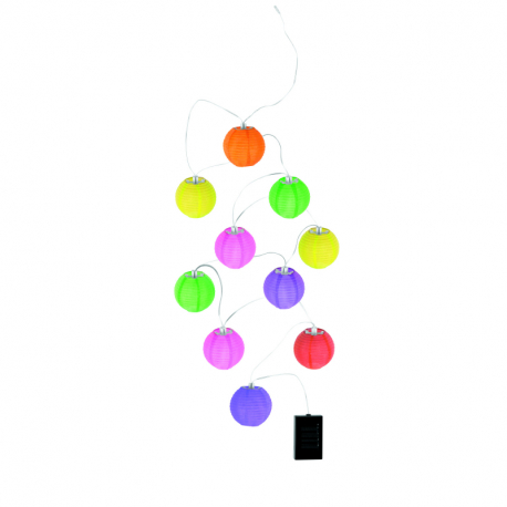 10xLED 0,06W 3,2V, biela Solárne svietidlo, plast multicolor a čierny, 20cm dĺžka medzi lampiónmi, dĺžka: 3m, IP44, O75, vrátane 10xLED 0,06W 3,2V, biela