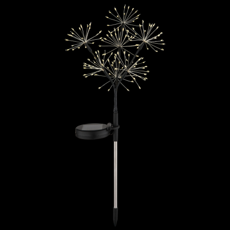 140x LED 0,06W 3V, 3500K Solárne svietidlo z nehrdzavejúcej ocele, plast čierny matný, plast číry, posuvný vypínač, batéria súčasťou balenia AA 600mAh 1,2V, IP44, o: 250mm, V: 600mm, vrátane 140x LED 0,06W 3V, 3500K