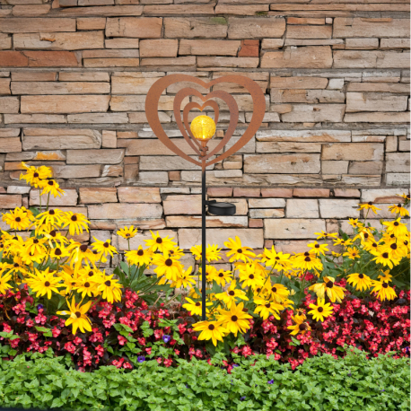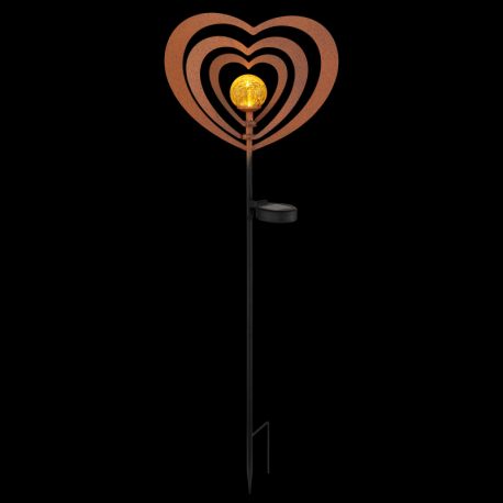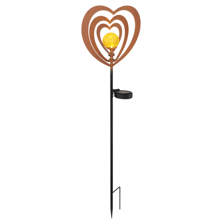LED 0,06W 3V, 3000K Solárne svietidlo, kov, imitácia hrdze, kov čierny, plast čierny matný, jantárová guľa s efektom popraskaného skla, posuvný vypínač, batéria súčasťou balenia AAA 300mAh 1,2V, IP44, DxŠxV: 280x60x820mm, vrátane LED 0,06W 3V, 3000K