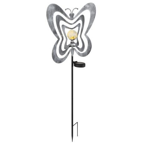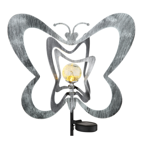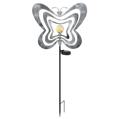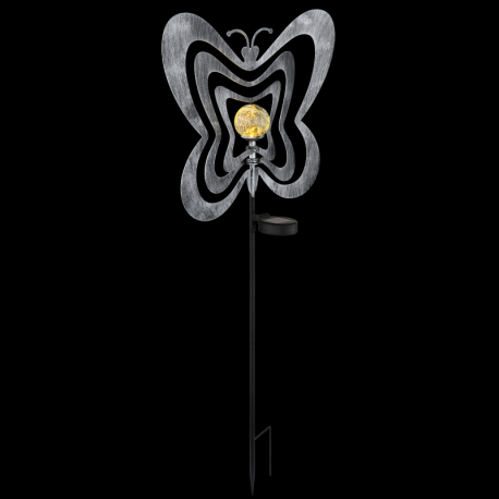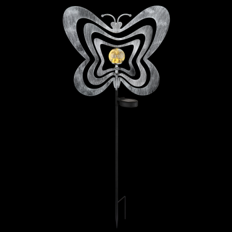 LED 0.06W 3V, 3000K Solárne svietidlo, kov striebornosivý/čierny, plast čierny matný, číra guľa s efektom popraskaného skla, posuvný vypínač, batéria súčasťou balenia AAA 300mAh 1.2V, IP44, DxŠxV: 380x60x830mm, vrátane LED 0.06W 3V, 3000K