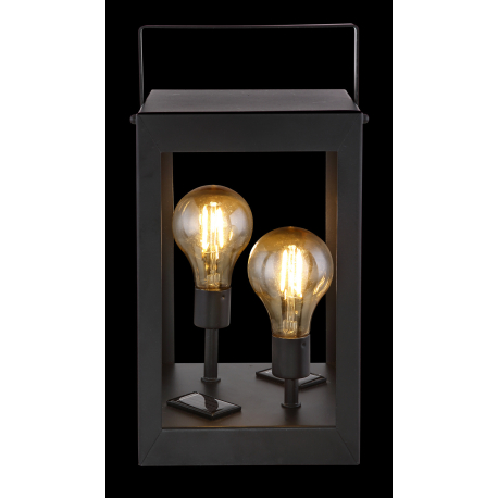 2xLED 0,06W 3V, 3000K Solárne svietidlo, kov čierny, plast jantár, lampáš s dvomi žiarovkami Edison, IP44, vypínač, akumulátor AA 600mAh 1,2V, DxŠxV:140x140x280, vrátane 2xLED 0,06W 3V, 3000K