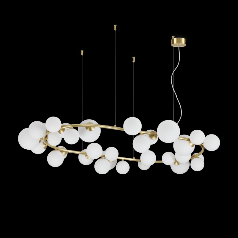Produkt z kategórie Závesné svietidlá / LED dizajny a atypické, štýl moderný, vhodné do obývačka, izba a spálňa, kuchyňa, kancelária, študovňa, spoloč. a reprezentatívna hala s možnosťou použiť svetelné zdroje: Halogénové žiarovky, LED zdroje. 30x15W/G9 Technický list Trieda ochrany: 2. Rozmery artikla: L 1430 x H min 400 / max 2165 x P 930 mm. Rozmery rozety: D 90 mm. Rozmery tela: L 220 x H 150 x P 0 mm. Počet zdrojov svetla: 30. Váha netto v kg: 8,92. |