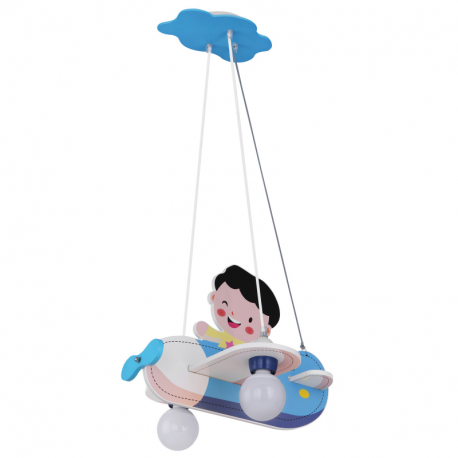 2xE27, max. 40W Závesné svietidlo, drevo, modrá biela, plast opál, lietadlo s chlapcom, DxŠxV: 430x400x1200, bez žiaroviek 2xE27, max. 40W 230V.