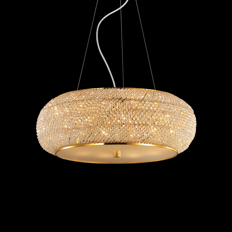 Produkt z kategórie Závesné svietidlá / Sólo s dominantným tienidlom ostatné (izbové), štýl tradičný, klasický, vhodné do obývačka, izba a spálňa, kuchyňa, kancelária, študovňa, spoloč. a reprezentatívna hala s možnosťou použiť svetelné zdroje: Klasické žiarovky, Halogénové žiarovky, Úsporné žiarivky, LED zdroje. 10x40W/E14 Technický list Trieda ochrany: 2. Rozmery artikla: D 550 x H min 440 / max 2190 mm. Rozmery rozety: D 110 mm. Rozmery tela: D 550 x H 190 mm. Počet zdrojov svetla: 10. Váha netto v kg: 8,5. |