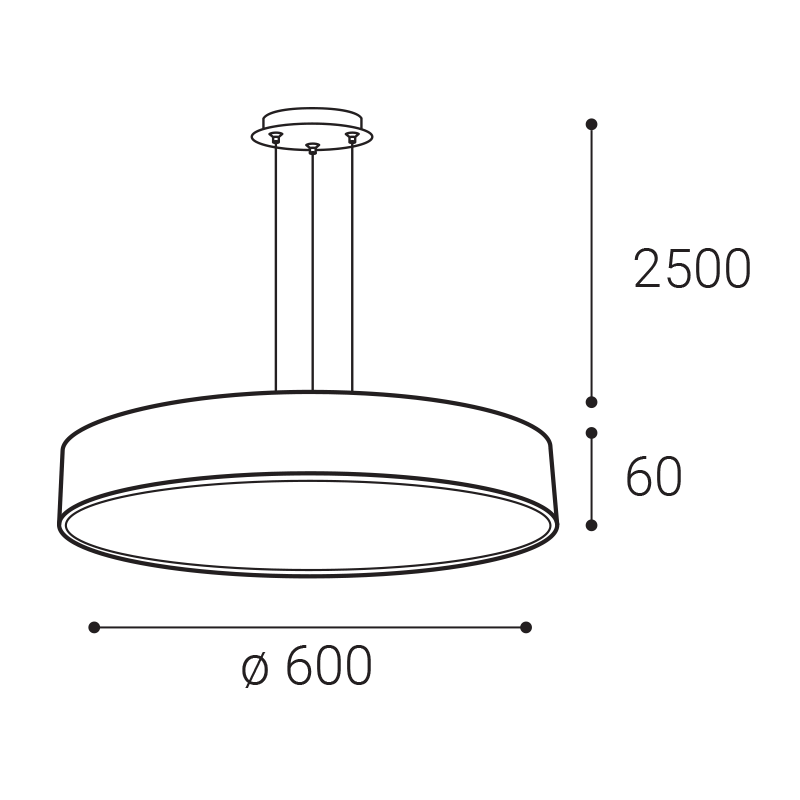 Produkt z kategórie Závesné svietidlá / Sólo s dominantným tienidlom ostatné (izbové), štýl moderný, vhodné do obývačka, izba a spálňa, detská izba, kuchyňa, kancelária, študovňa s možnosťou použiť svetelné zdroje: LED zdroje. 60W/LED, 4200lm, 2700/3000/4000K MONO SLIM 60 P-Z, W DALI/PUSH 60W 2700K/3000K/4000K CCT: 2700K/3000K/4000K. Dĺžka závesu: 2500 mm. Efektivita: 70lm/W. Farba: WHITE. Farba tienidla: OPAL. Materiál: METAL/PMMA. Napájací zdroj: 2 x 750 mA. Napájanie: 220-240V/50-60Hz. Príkon: 60W. Rozmery balenia: 640x640x85 mm. Rozmery svietidla: d600x60 mm. SDCM: < 3. Stmievanie: DALI/PUSH. Svetelný tok zo svietidla: 4200lm. Trieda ochrany: 2. Vyžarovací uhol: 160°. |